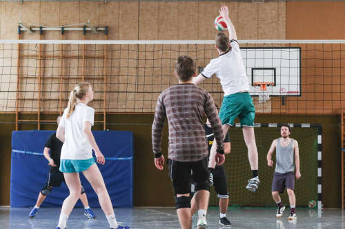 Volleyball ist ein dynamischer Teamsport mit Action, Technik und viel Spielpraxis. Im Kurs trainieren wir die Grundlagen (Pritschen, Baggern, Aufschlag, Angriff/Block), verbessern Stellungsspiel und Teamtaktik und setzen das Gelernte in Spielformen und Matches um. Geeignet für Einsteiger*innen und Fortgeschrittene – im Mittelpunkt stehen Bewegung, Fairplay und Spaß im Team.